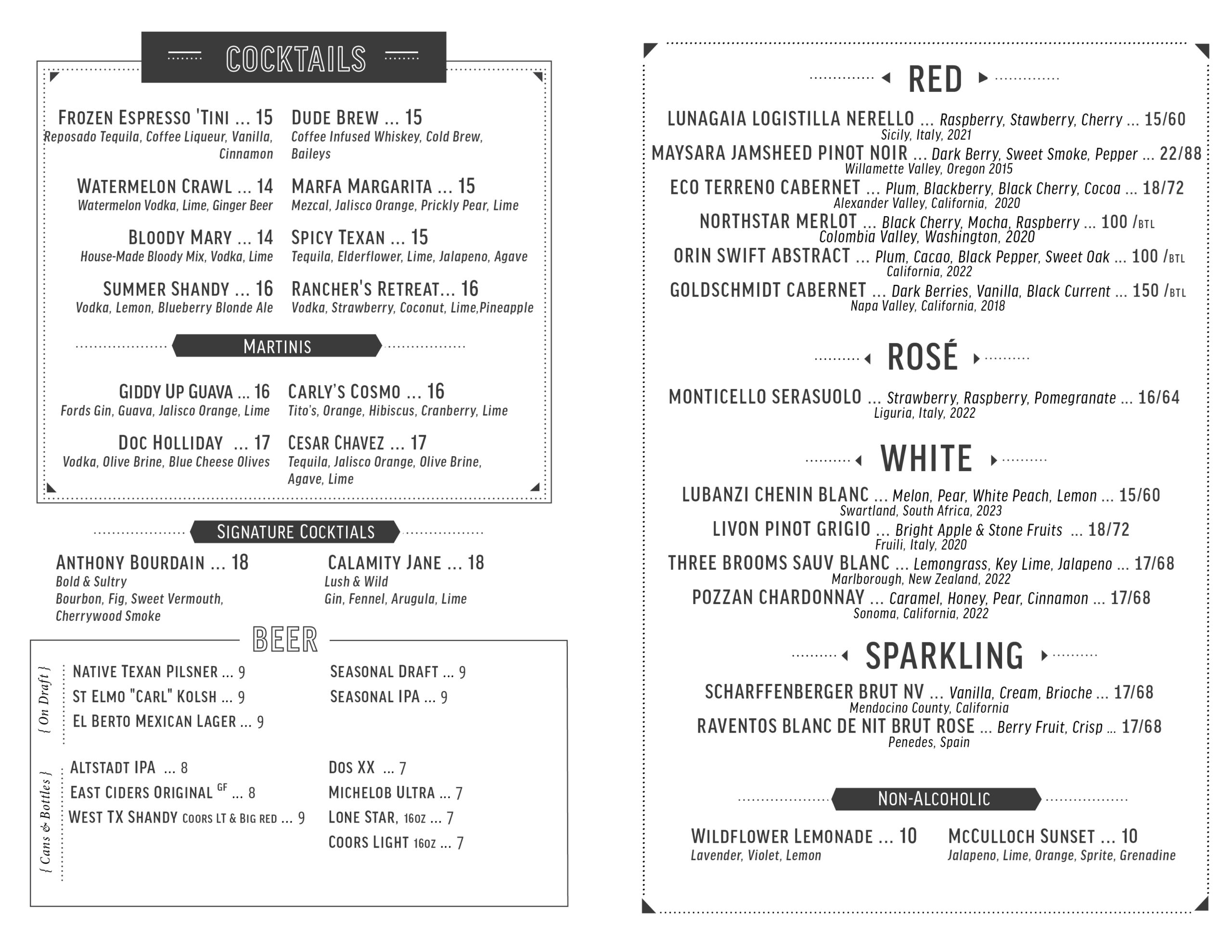 Reposado Tequila, Coffee Liqueur, Vanilla, Cinnamon