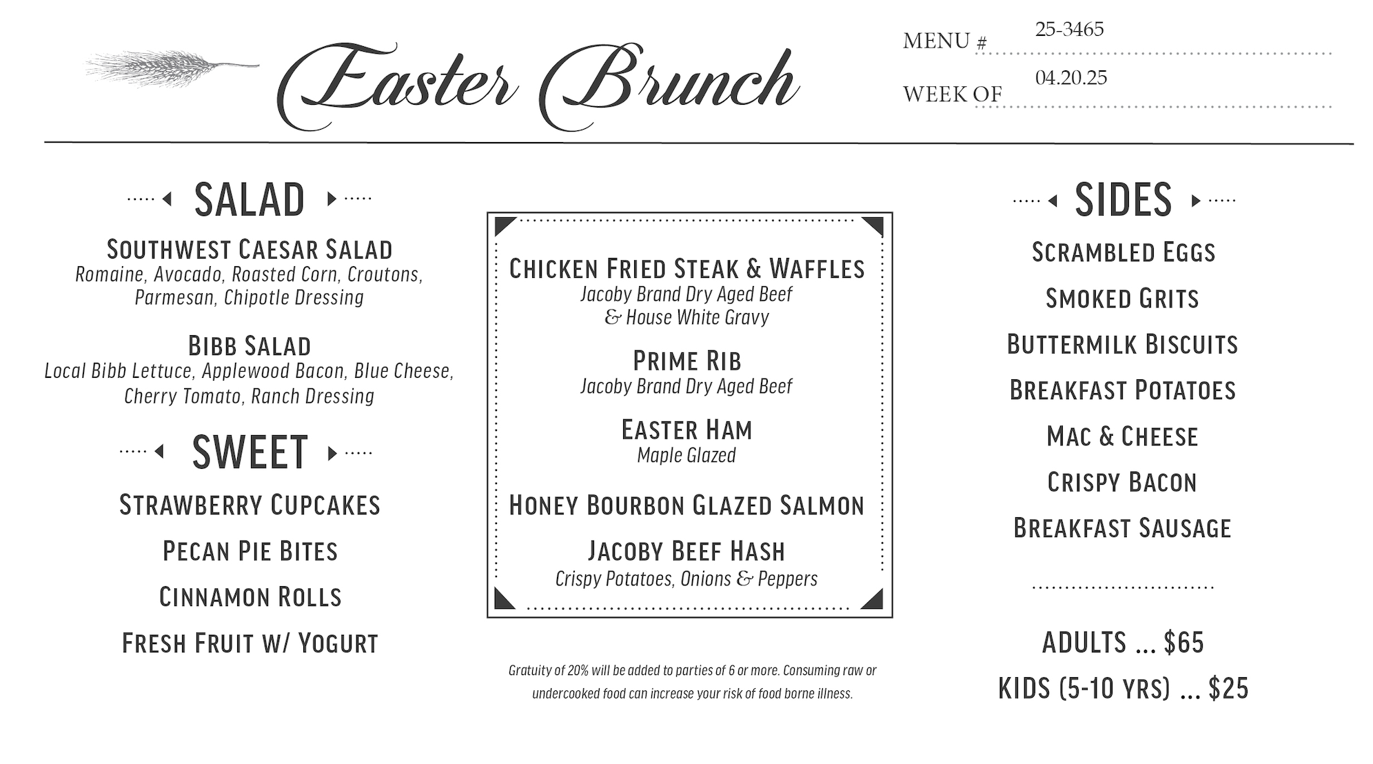 Adults ... $65 | Kids (5-10 yrs) $25